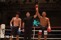 3R、辻出が左ストレートから右フック。中村は距離を取りながら右ストレート、ヒザ蹴りを合わせる。しかし辻出は構わず前に出て右フックから左ストレート、左ハイキック。アグレッシブに攻める辻出だったが、パンチの打ち合いで中村がダウンを奪う。ここで試合終了となり、中村が判定勝利を収めた。