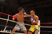 大川はインローとミドルで匠をロープに詰めて連打。しかし匠も右ストレートから回転の速いパンチを打ち込んでダウンを奪う。残り10秒、一気に襲い掛かる匠。右ストレートで大川に尻餅をつかせるが、それとほぼ同時にラウンド終了のゴング。ダウンとは認められなかった。