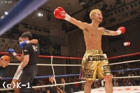3R、大沢が右フックと左ボディ。竹内も右ストレートから左ボディを返す。竹内が左のヒザ蹴りで前に出ると、大沢は左ボディ。ここで竹内のヒザ蹴りがローブローとなり試合が一時中断となる。再開後、竹内は強烈なボディブローで大沢を下がらせて右ストレート! これで大沢が後方に吹っ飛びダウン! 立ち上がった大沢は右のヒザ蹴りで前に出るが、そこに竹内が左フック! ダウンを奪われた大沢は必死に立ち上がろうとしたが足元がおぼつかず、レフェリーが試合をストップ! 竹内が壮絶な殴り合いを制した。