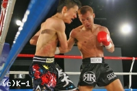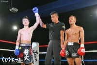 3R、ワンツーで前に出る大川と左ミドルを蹴る将大。ポイントでリードを許している大川は左ストレートから前進。将大もそこに左フック、右ストレート、ヒザ蹴りを狙う。ダウンと減点のポイントもあり、将大が大川に3ポイント差をつけて判定勝利した。