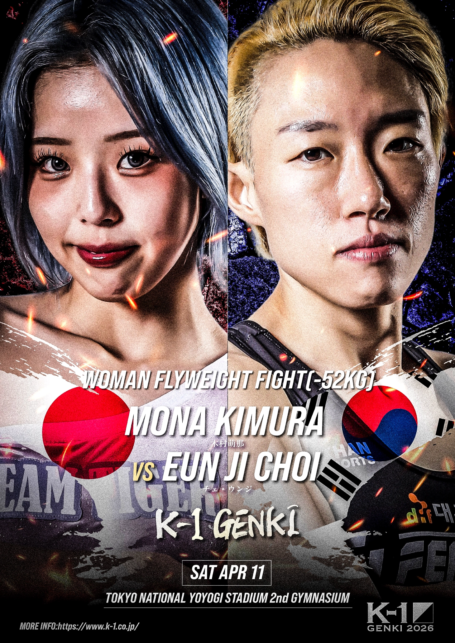 すでに参戦が発表されている“強カワ春麗”木村萌那(日本/K-1ジム目黒TEAM TIGER) の相手は、MAX FCチャンピオンのチェ・ウンジ(韓国/大邱FEARLESS GYM)に決まった。