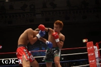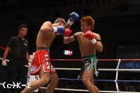 1R、両者オーソドックスで和氣はセコンドの指示に従い左右のローを蹴っていく。南野はリング中央に立ち、和氣のローをカット、パンチをブロッキングで防ぎ、自らが攻めるタイミングをうかがう。右ロー中心の南野に対し、和氣はパンチからのロー、ハイキックと多彩に繰り出すが、南野は堅固なディフェンスを崩さない。