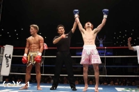 3R、レオナが打って出んとしても大雅はやはりバック&サイドステップで巧みに距離を外す。それでもレオナが出てくると、体をかわしながら右フック。前に出ての左ヒザもレオナに見舞う。大雅はバックステップして距離を作り、そこへレオナが右ストレートで来ると、自身も左ストレートのカウンターで迎え撃つ。ラウンド終盤はしかしレオナが右ストレートのヒットから攻勢を掛け、大雅に右ストレートを連打して終える。