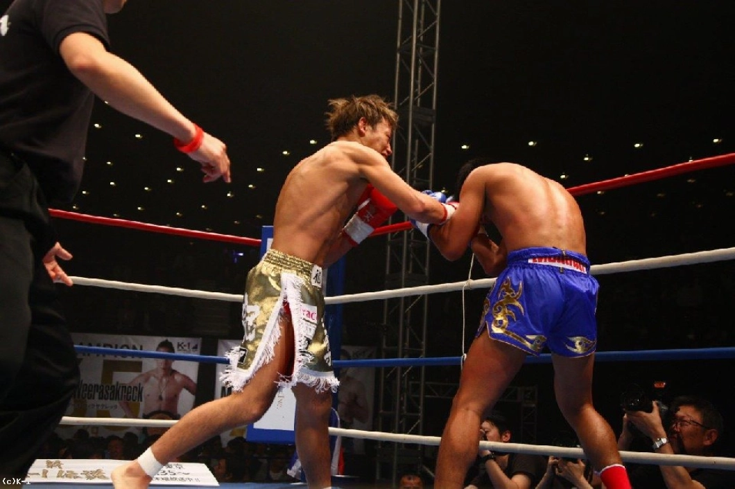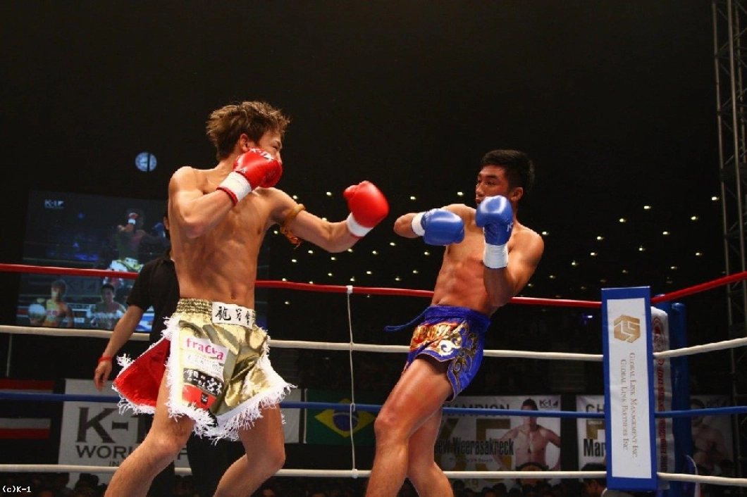 「(試合の感想は?)約4カ月ぶりくらいで。試合が大好きなので、空いちゃってつまらなかったので、凄く楽しめましたね。僕は高校のときにタイに行くくらい、ムエタイはリスペクトしてる格闘技なので。そういう選手とK-1で戦えてうれしかったですね。蹴りで来るかと思ったら、意外とパンチが強くて。途中で効いたんですよ、左目もちょっとボヤけてて。ムエタイの選手はポーカーフェイスなので、コッチの攻撃が効いてないのかなと思って。凄く打ちあいにきたので、ここしかないと思いました。自分的にも打ち合いたかったですね。凄く楽しくて、スイッチが入って、そうしたら当たったので。