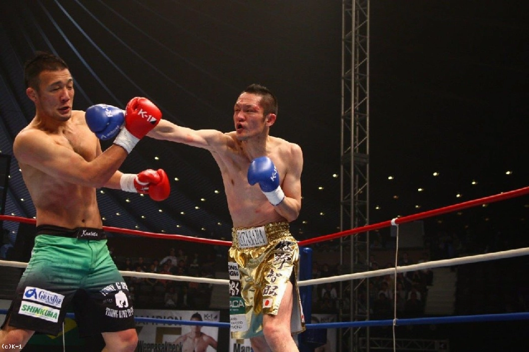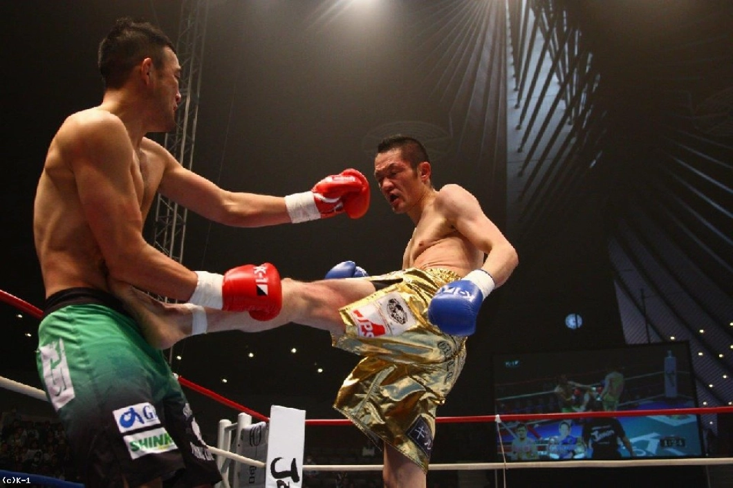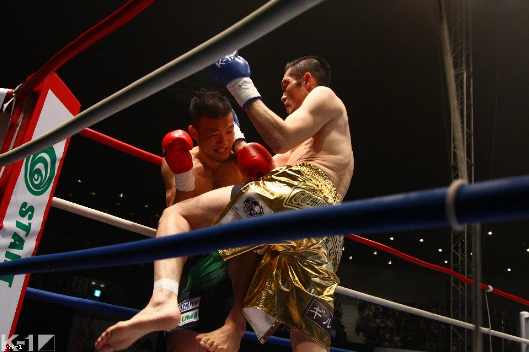 左ミドルで攻める牧野だが、内山が打ち下ろしの右ストレートをカウンターで決め先制ダウンを奪取。立ち上がった牧野は右クロス、右ストレート、左ミドルで反撃に転じるが、しかしその後でヒザを放つ際掴み行為を見せてしまいレフェリーから注意を受ける。