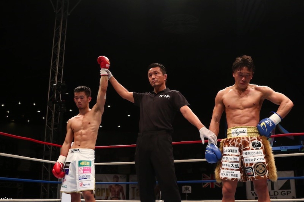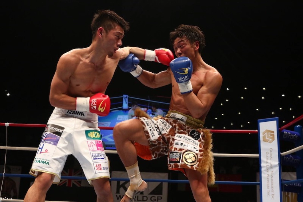 2R、鈴木はローの照準を絞らせないため、左右に動いてジャブ&ストレート。しかし伊澤は左のローを連打して効かせていく。鈴木は逆にボディへのヒザを突き上げて効かす。足を効かす伊澤と腹を効かす鈴木、両者我慢比べのような展開となる。パンチで止めたい鈴木だが、伊澤はストップせず距離を詰めてローキック。ガードしてその場で足が止まる伊澤に鈴木はボディへのヒザで応戦する。しかし鈴木は伊澤を掴む行為が見られレフェリーから注意を受ける。