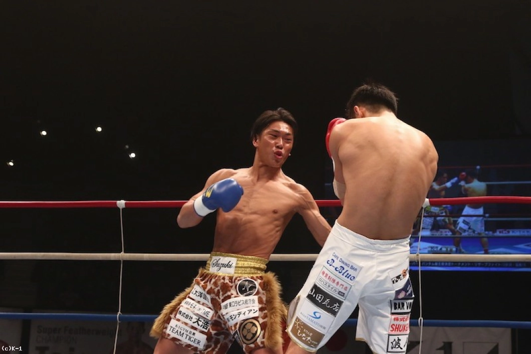 3R、伊澤はグッと前に出てローを浴びせる。鈴木はパンチ&プッシングで伊澤を遠ざけんとするが、伊澤の圧力を持て余してクリンチとなってしまう。掴み行為に対し両者に注意が出される。接近戦に持ち込む伊澤はショートのフックとローキック。鈴木は掴み行為に対してレフェリーから警告を受け、ラウンド最後は伊澤がフック&ロー(スネとカカト)で攻めて終了となる。