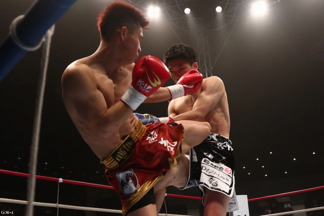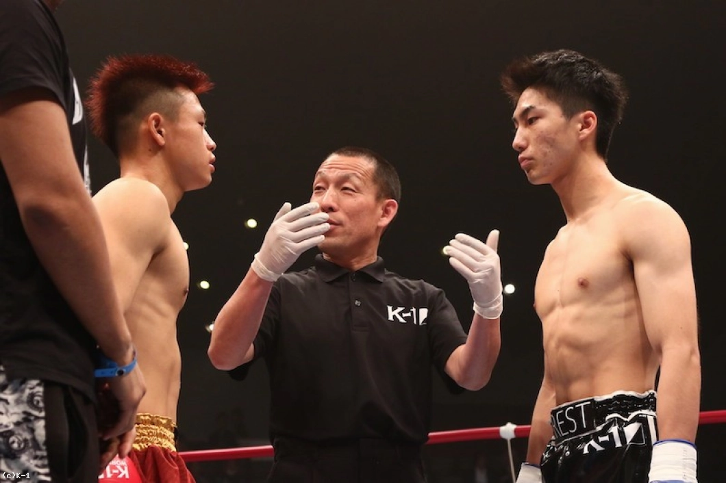 西京はロー、左ミドルを入れて小久保を下がらせる。身長で6㎝上回る西京に対し、小久保は左ボディ。しかし西京はこれで下がらず前に出てプレッシャーを掛けボディに左ヒザ。西京は右のヒザもボディに入れて小久保に効かせる。依然小久保にプレッシャーを掛けロープを背負わせた西京は左フックをズバリと当ててこれに小久保はダウン。1R終了間際にデビュー戦ノックアウト勝ちを果たした。