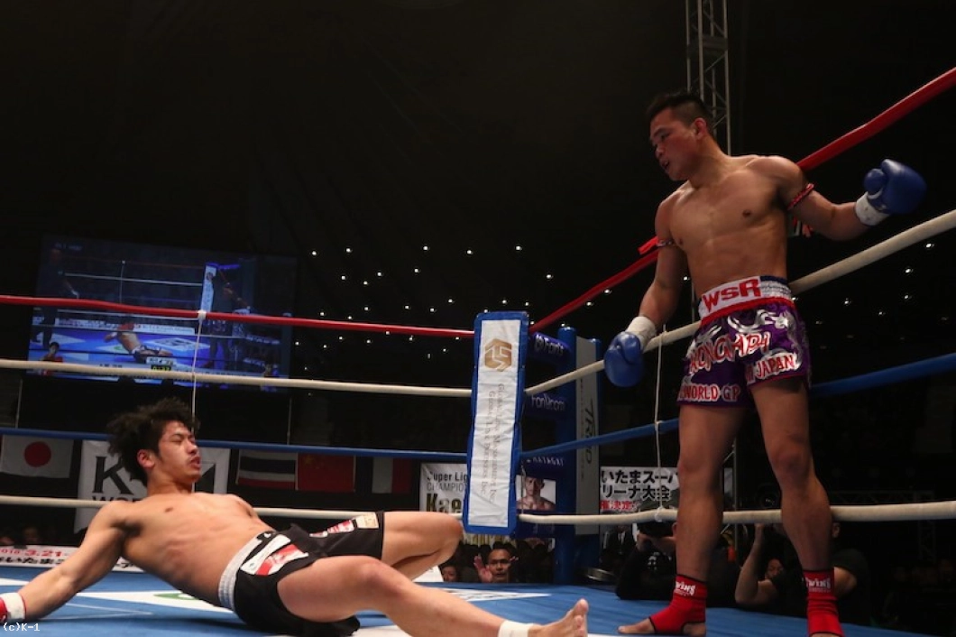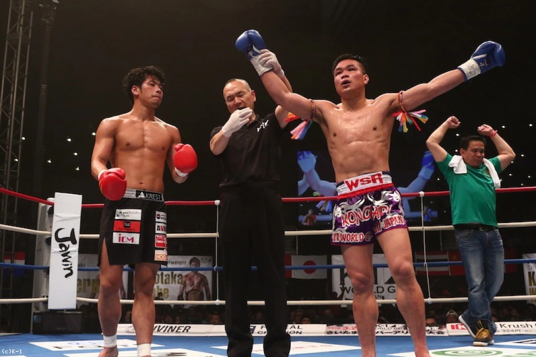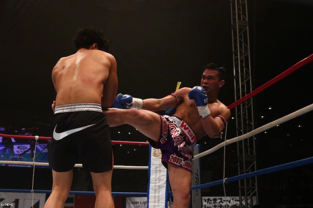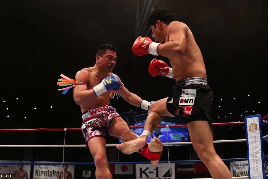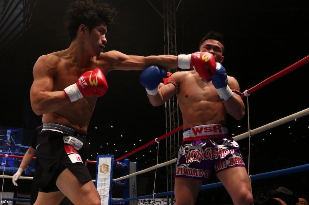 1R、サウスポーの功也に対し、ゴンナパーはオーソドックスに構え、右ロー、右ミドルと右の蹴りで猛攻。功也はこの合間に左ストレート、ワンツーフックとパンチの連打を回転させる。ゴンナパーは本来のサウスポーに戻って左ミドル、左ハイ。ここで功也はパンチで猛然と攻め、左ストレート、左クロス、左フックと当てて攻勢になる。
