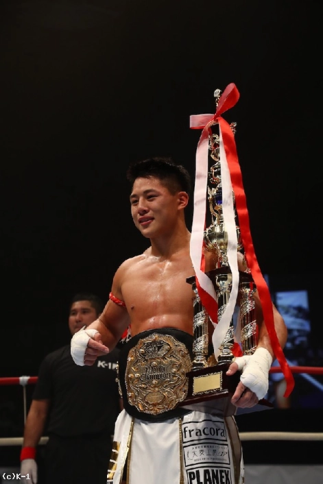 「(試合の感想は?)相手が対策してくると思ったんで何しよう何しようと考えちゃって、固くなっちゃいました。(相手の印象は?)あんまり試合は覚えてないですけど、強かったです。(ベルトの感触は?)やっとこのベルトが獲れたなと。(勝てた要因は?)K-1のチャンピオンになりたいとずっと思ってたんで、それが試合に出たんだと思います。
