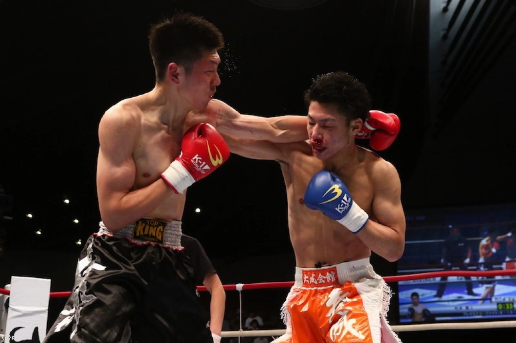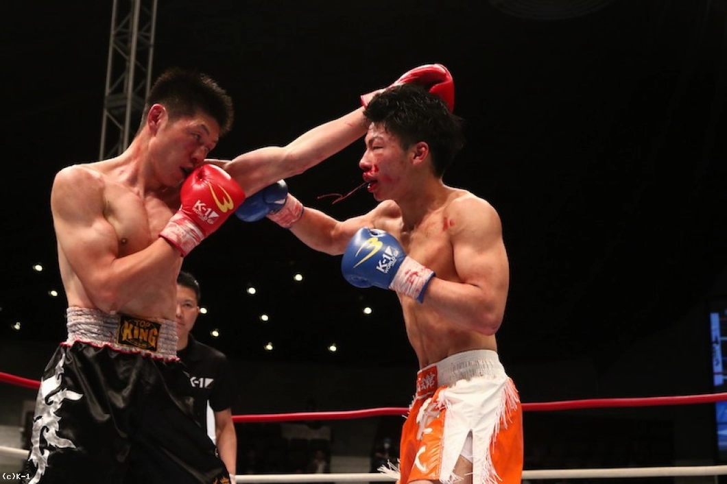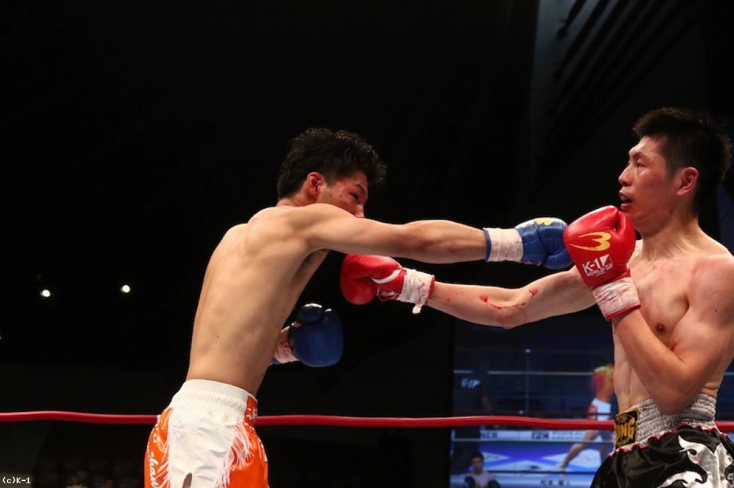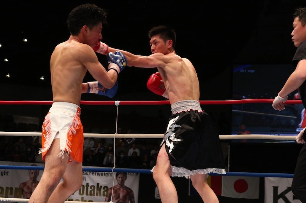 2Rも開始とともに近藤が左右パンチで突進。松本はパンチとヒザを返し、距離を詰めての打ち合いに。その後近藤の前蹴りがローブローとなり、近藤も出血でドクターチェックに。再開後、また距離を詰めての打ち合いになると近藤はボディをヒット、松本もパンチ返し、両者ヒザも出し合う。