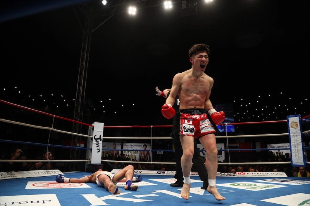 (一回戦のハイキックは?)練習の時から狙ってました。相手はローを蹴る時に右手が落ちる癖があるので、ずっと狙ってました。