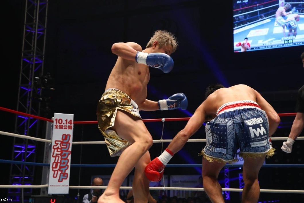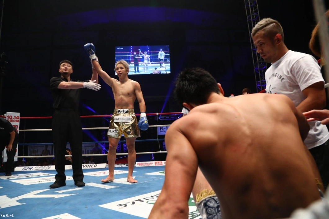 「(1回戦を振り返って?)できたことと同時に、できなかったことも出てしまって。なんとか勝てたという感じでしたね。(準決勝を振り返って?)ダメージが残っていて、一発で効いちゃいましたね。ローに合わせて蹴ろうと思ってたんですけど、なかなか踏ん張りも効かずはまらなかったです。反省点ばっかりですけど、一番はローキックのカットですかね。おろそかにしていた部分で出たんだと思います。(ファンへのメッセージを)今日は遠いところまで来てくれた人もいるのでありがたかったです。K-1はレベルの高い舞台で刺激をうけました。僕はKrushのほうで、K-1で受けた刺激や得たものを出していきたいなと思います」