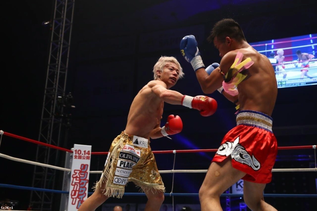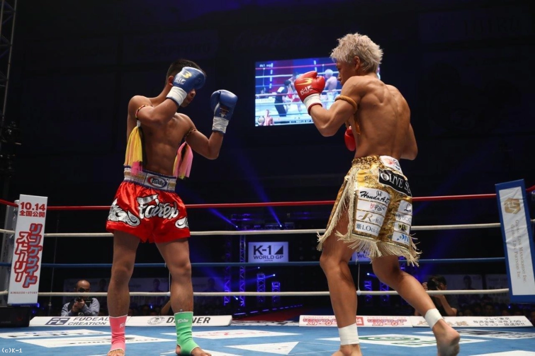 2R、武尊の前進を前蹴りで止めるワン。後ろ回し蹴りも繰り出し武尊を幻惑する。右ストレートも軽くではあるが武尊の顔をとらえる。武尊はワンの前進にボディへのヒザを合わせ、大きな右ボディフック。だがワンも前蹴りを止めず、武尊の前進を妨げる。しかし武尊は左ミドルからステップインしての左右ボディフック、ボディへのヒザ、左ローと決める。武尊はワンのプッシング、顔面前蹴りとさらに前進を阻まれるが、ボディフックからの左ロー、ボディフックで削っていく。