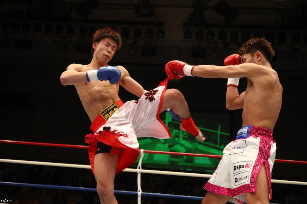 1R、落ち着いて椿原のミドルを見切ってかわす西京はサウスポーから左ボディストレートをヒット。椿原は右ストレートを伸ばしてヒットを上げるが、同じタイミングで西京のローが椿原の下腹部に入ってしまい、一時中断となる。再開すると椿原は再び右ストレートをヒット。だが西京は冷静さを崩さず左ストレートをヒット。西京のボディストレートに椿原は左フックをカウンターで合わせる。