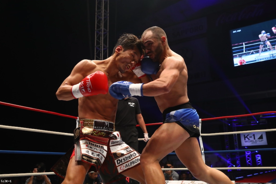 「(試合を振り返って?)ちょっと疲れたっすね。K-1が延長なんかさせるから(笑)。寿命が縮みますね。(対戦相手の印象は?)なかなかチンチクリンのわりにはパンチがあって、珍しく効いたっすね。もうちょっと楽なパンチかと思ったら。