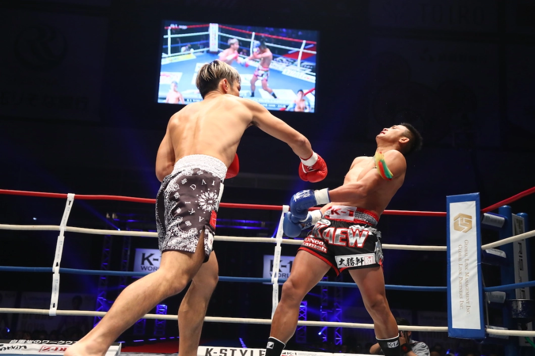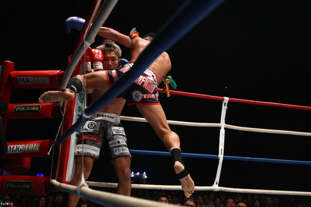 (決勝で入れなかったのは?)ミドルとヒザと、ゴングが鳴って飛び込んで入ってくるミドルに、自分がどこか怖じ気づいたというか、そういう部分があったんだと思いますね。(ゲーオの足のケガには気づいていた?)そうですね、左右田選手とやった時から、血が流れているのは見てたんで、ミドルを強く打ってないなというのはあったんですけど、決勝だし、強く打ってくるだろうなと思ってました。