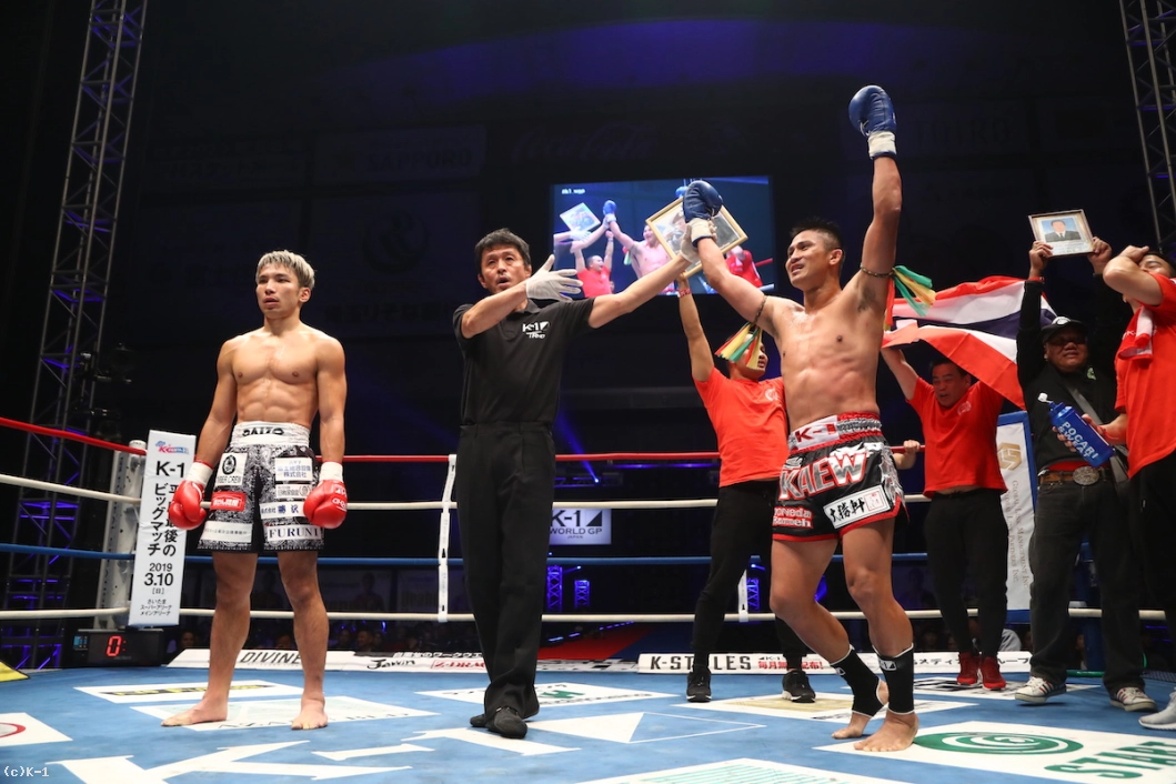 3R、ゲーオはこのラウンドも左ハイから入る。そして佐々木がワンツーで切り込んでくると前に伸ばした手でこのパンチを弾いて当てさせない。ゲーオは前蹴りで距離を保ち、ボディへのヒザ。佐々木はこの距離を詰められない。ゲーオは前蹴りをボディと顔面に飛ばし、クリンチも駆使する。 終了のゴングが鳴ると、ゲーオは勝利を確信し歓喜の声を上げコーナーに駆け上がる。判定は30-29、30-29、29-28の3-0でゲーオ。旗揚げ4周年記念興行をトーナメント優勝で締めくくった。