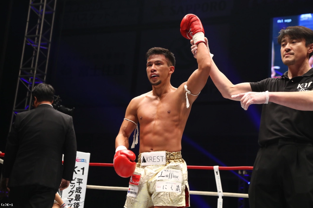 (ファンの方にひと言)ファンの皆さん、本当にフェザー級に落としたことでいろいろ心配した人もいると思うし、皆さん期待もしてくれたと思うし。その中でKOで勝てました。フェザー級で戦うのはこれが初戦なんで、その中で次へとつながる試合を見せられたかなと思います。ファンの皆さんを一つ、安心させられたかなという気持ちがあります。よかったです」