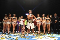 「今日は初大阪大会、満員のご来場本当にありがとうございました。会場の熱が東京とはまた違って大阪のファンのみなさんが好きになりました。皇治選手の声援の方が大きかったですけど、またそれもパワーになったので、ありがとうございました。皇治選手と試合前はいろいろ言い合いましたが、実力あるのは分かっているし、3階級制覇した時のトーナメントと同じ追い込みをして臨んで、戦ってこれだけ粘られたのも初めてだし、皇治選手の強さを感じて、やる前よりリスペクトが上がりました。