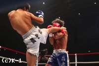 立ち上がった倉崎はなおも前進し、ダウンを取り返しに行くが、やはりダメージがあるか動きがやや緩慢になっている。TETSUはストレートからボディへのヒザ。しかし倉崎は一層激しさを増してTETSUに迫る。TETSUはガードで倉崎のパンチを弾き、そこからパンチを返していく。そしてTETSUがガードからのヒザ、胴回し回転蹴りと放って試合終了。