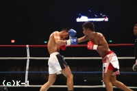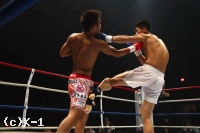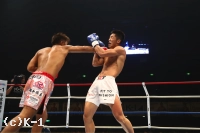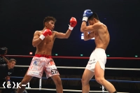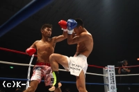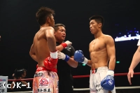 2R、大沢は前に出て右ローを連続でヒット。これを嫌そうにするウェイ。大沢はさらに左右ボディフック、右ストレートと巧みに攻撃を散らしてヒットする。ウェイは長身を利して圧力を発し、前に出て左ストレート、前蹴り、ヒザと大沢を攻める。大沢はダメージを受けガードを固めるが、ウェイはさらに攻撃を集めてくる。しかし大沢も左右フックを顔面に集めウェイをフラつかせる。盛り返した大沢はさらにボディフックもめり込ませウェイに迫る。
