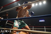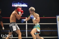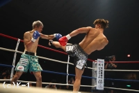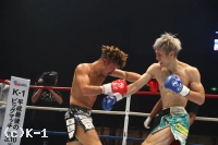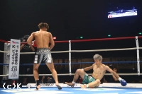 2R、川﨑は右ストレート・左フックと強打を連打し、東本に迫る。東本が左ローを放てば川﨑はボディへのヒザ、前蹴りと反撃する。川﨑はその後も前蹴り、右ストレート。東本も左ストレートを返すが、両者相手のストレートは当てさせない。東本のミドルを受けた直後に打って出た川﨑は右ストレートから左フックと当てダウンを奪い返す。