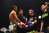 3R、ロー、ハイキックで来るヨーブアデーンに、武居は掛け蹴り、三日月蹴りと対抗する。ヨーブアデーンは前蹴りから左ロー。武居はこれに遠い間合いから右アッパー、左フックと攻めるが、距離が遠くヨーブアデーンに見切られる。ヨーブアデーンはガードを固めつつ前に出て左ミドル、ヒザ蹴りで攻める。武居はヨーブアデーンが接近したところでアッパー、フック&ボディフックで応戦する。左ミドルで攻勢を強めるヨーブアデーン。ゴングが鳴るとヨーブアデーンが勝利をアピールするのに対し、武居は苦し気にマウスピースを浮かび上がらせる。判定は30−30、30−29(ヨーブアデーン)、30−29(武居)の1−1でドロー。延長戦に突入となる。