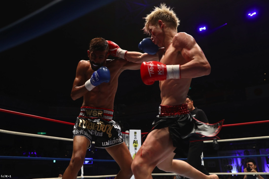 3R、玖村がミドルを放っていくが、その直後にハシミは右ストレートを伸ばしてヒット。パンチの後で間合いが詰まってもハシミはレフェリーのブレークが掛かるまでヒザを飛ばしアグレッシブな印象で攻める。玖村はここでハシミの右ハイキックを受け左まぶたから出血が見られる。出血で視界が遮られ、玖村はやや動きが落ちる。ハシミにバッティングがあり玖村は顔をしかめる。試合の流れはハシミにあったが、玖村は蹴りから繋いだ右ショートフックでダウンを奪取。ハシミが立ってくるとさらに右ストレートで後方にフラつかせ、逆転KOで武居の待つ準決勝に進出した。