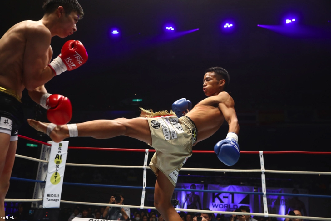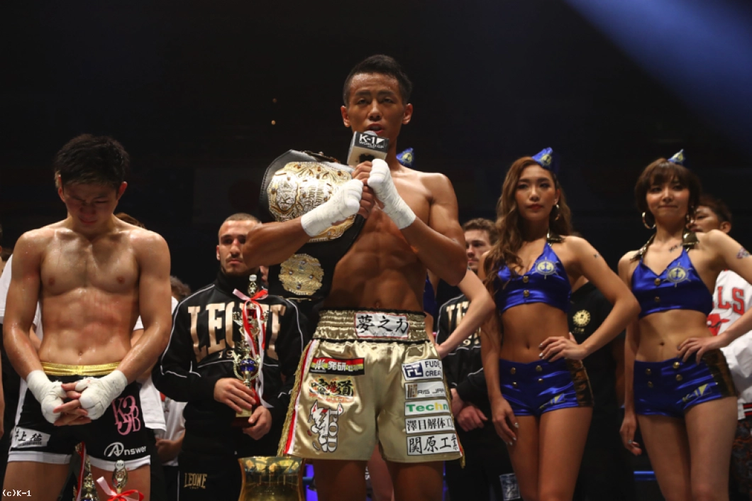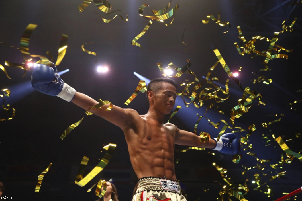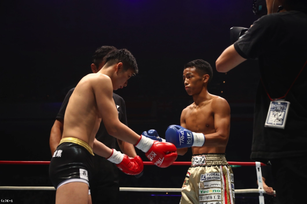 (決勝のフィニッシュになった倒れ際の蹴りについて)意識して練習はしてないんですけど、試合では一瞬の隙というところでは詰めないといけないと思っていて、そういう怖い部分で攻めていこうかなと思ってました。(セコンドからハイキックの指示も出ていたが?)そんなに聞こえてませんでしたが、正直蹴りは狙っていて、蹴っていこうという意識はありました。(決勝の1Rが終わった時に会長からは?)焦りすぎだって言われました。正直、全試合1RKOを目標にしてたので、1Rに倒そう倒そうとしすぎて動きが固くて、怒られました。それでちょっと落ち着きました。(玖村兄弟が「倒せない相手ではない」というニュアンスのことを言っていたが?)ああ……ハイ(笑)。二人とも、自分を含めて若いので、まだまだ成長できると思うので、いつでも待ってますという感じです。