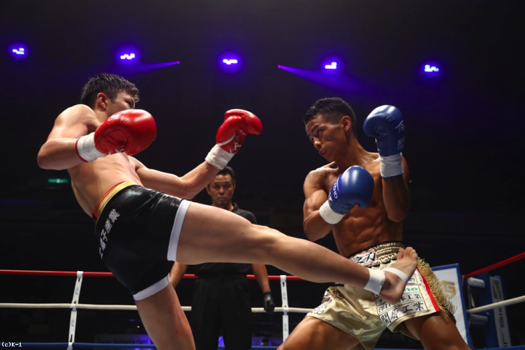 武居はさらに右アッパーから左ストレート。さらにワンツーで攻めると、玖村もそこへストレートをカウンターで合わせる。玖村はそこから右ミドルを入れ、やや流れを引き寄せたかに思えたが、武居は右アッパーから左ストレートをずばりと打ち込みダウンを奪取。さらにラウンド最後もラッシュからバックブローを決め初回を終える。