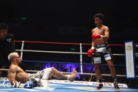 「相手が強いということで、相手を想定した戦い方の練習をしたり、佑馬とタイに1週間トレーニングに行ったりと、トレーニングがいろいろ充実していました。バレラ選手はパンチが多い選手だったんで自分が戦いやすかったというのもあります。(バレラは)前半が強い選手だったので、1Rはけっこう警戒して、しっかりパンチを見て。で、うまい具合にフックが入ってダウン取れて。