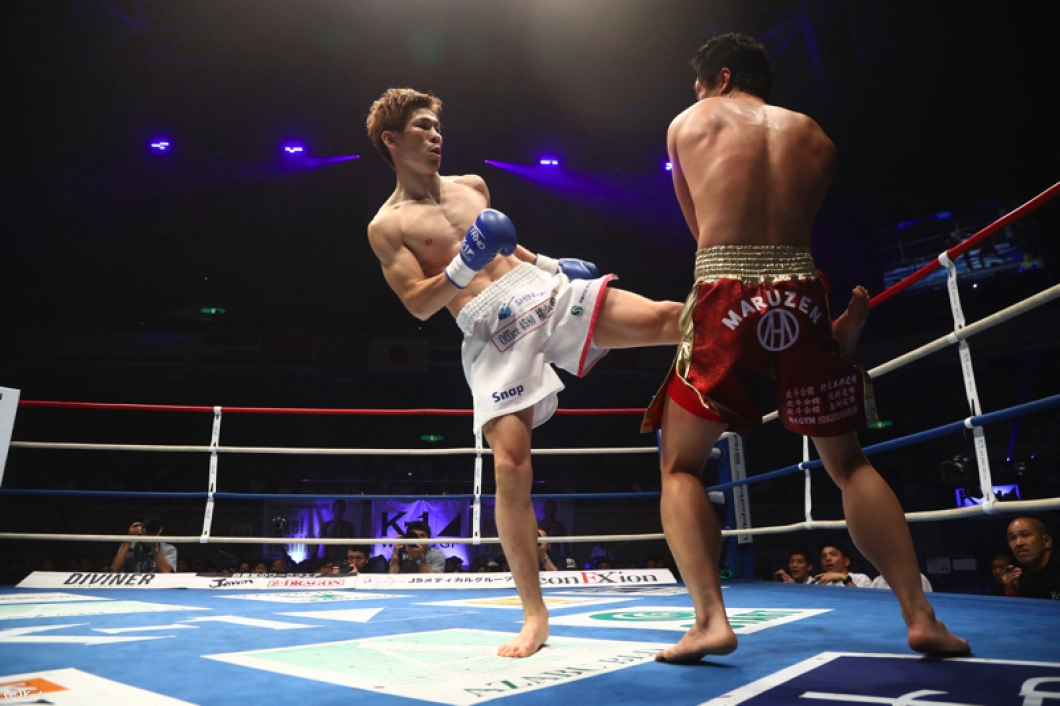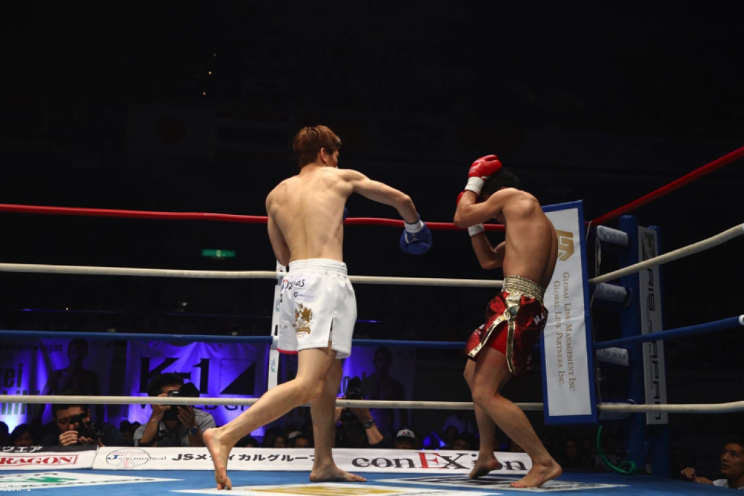 僕の中で小宮山選手はメチャメチャ強いイメージで、いろんな選手に小宮山選手のまねをしていただいたりとか、極真の成増道場さんにお世話になって、そこで空手の蹴りとか見せてもらったりとかして、それで慣れたんで、そういうところで勝つことができたんじゃないかと思います。(フィニッシュのパンチは?)あれもトレーナーと一緒に、次の試合に向けてこういう風にやろうというのを決めてて、それが出て、結果につながってKOすることができたんで。まあ練習したことが出たんじゃないかと思いますね。僕は右のパンチが強いって言われてるんですけど、左も強いんだぞというのを見せてやろうとトレーナーと話してて。その結果があんな感じで出たという感じです。