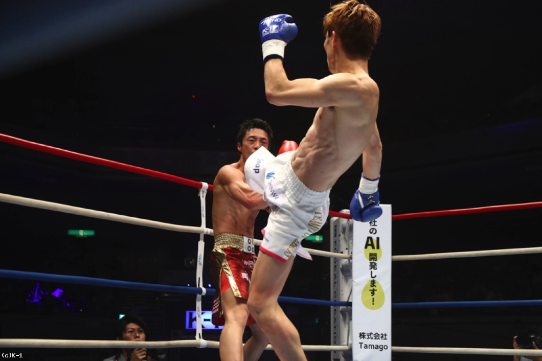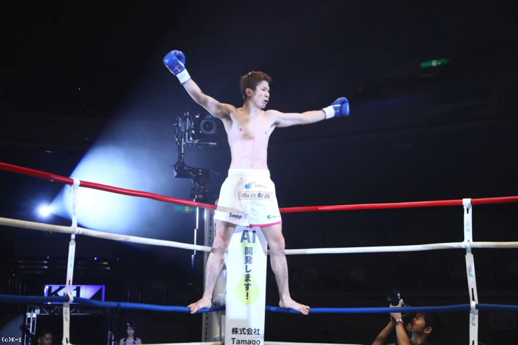 (武尊戦も見えてきた?)小宮山選手には日本人選手はみんな負けてるんで。小宮山選手に勝ってるのは僕と武尊選手なんで、普通に考えて僕と武尊選手がやるのが一番相応しいんじゃないかなと思いますね。(今後の目標は?)久しぶりのK-1参戦でインパクトを残すことができたんですが、まだまだ満足してないんで。もっともっとトレーニングを積んでもっともっと強くなって、世界に通用するように頑張るんで、これからも応援よろしくお願いします」