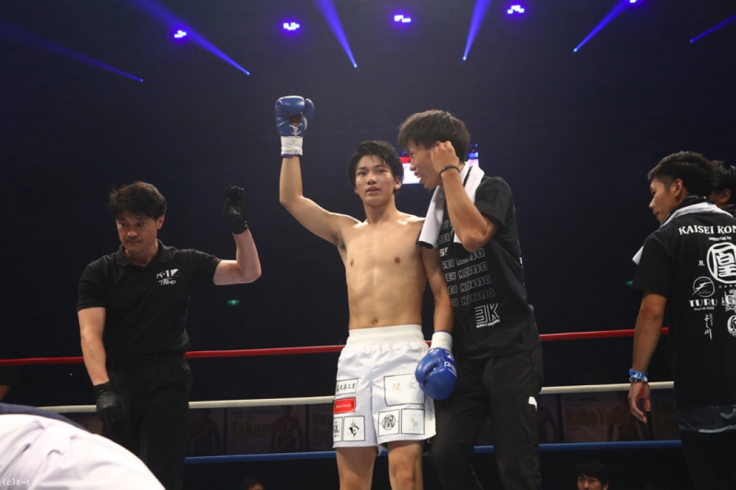 「KOできて嬉しいです。高校生のうちに世界チャンピオン狙っています。今のままじゃダメなので、これからもっと強い奴を倒して、高校生のうちに絶対ベルト取ります。第5試合に出るお兄ちゃんの応援もお願いします」