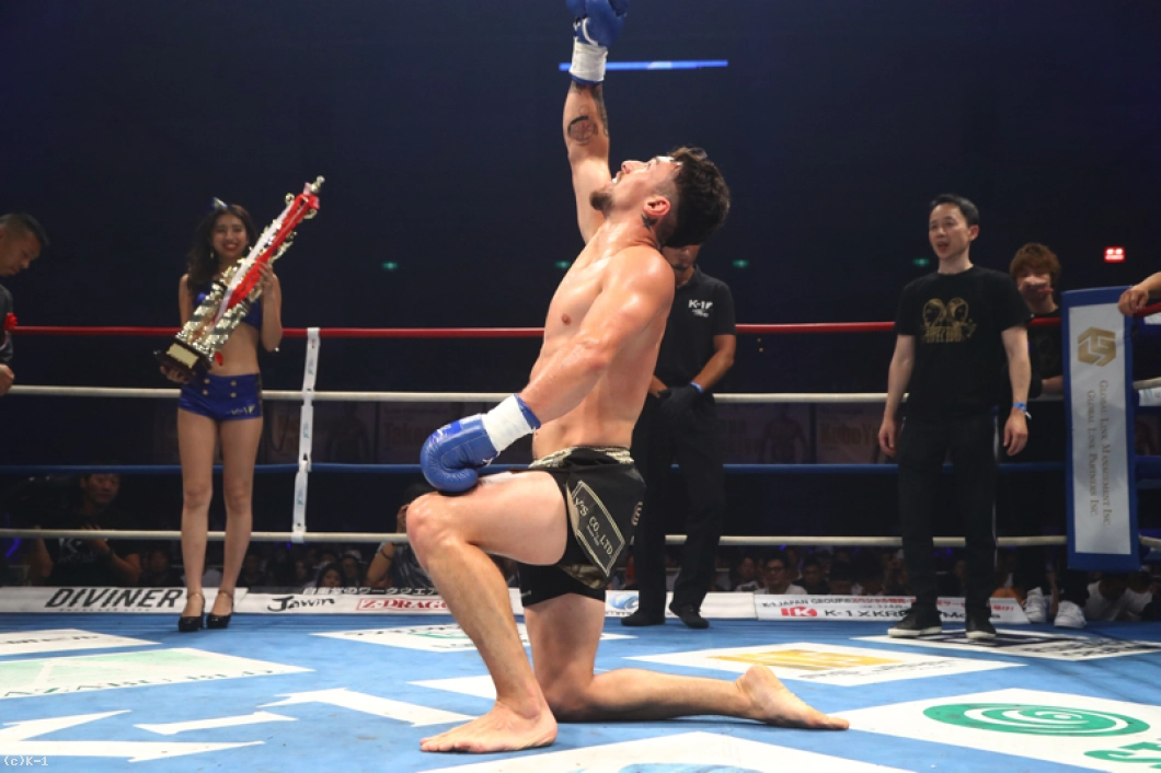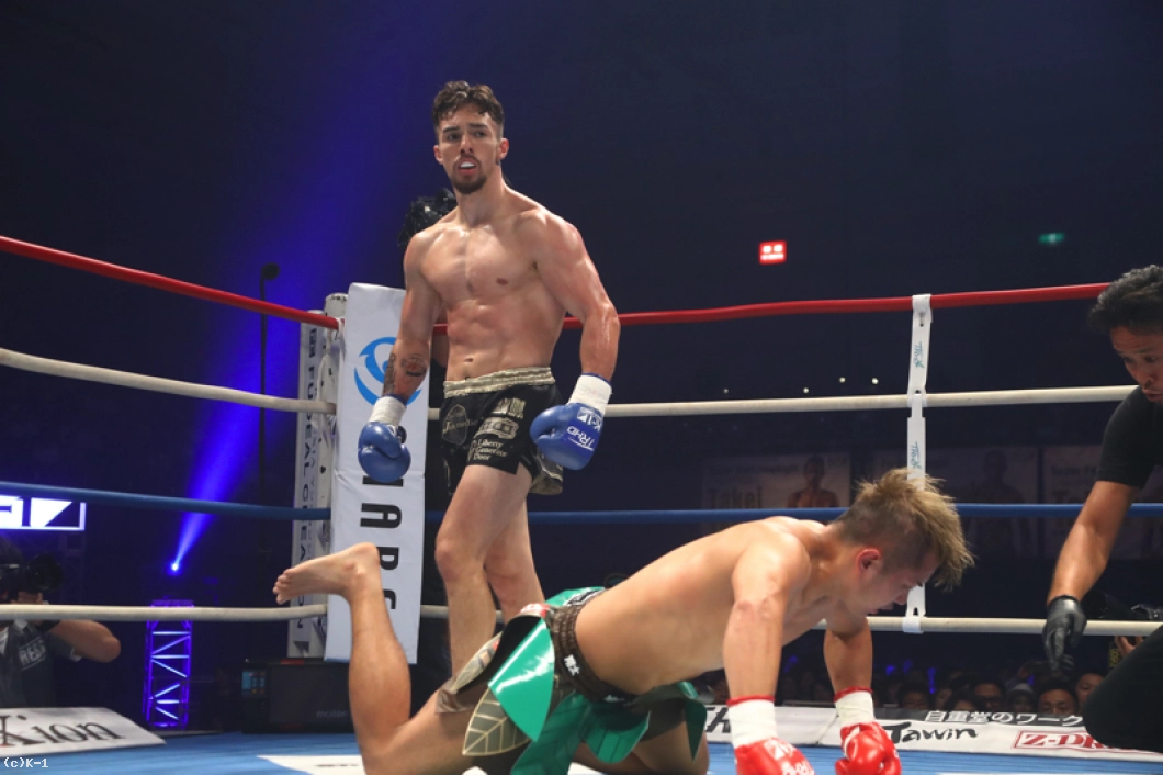 「大阪のみなさん、元気ですか。みなさんの熱い声援を入場から感じて幸せな環境でした。こんないいKOができて、いい試合ができたので、これからストーリーが続くので、K-1のベルトを獲って世界で活躍するんで楽しみにしてください」