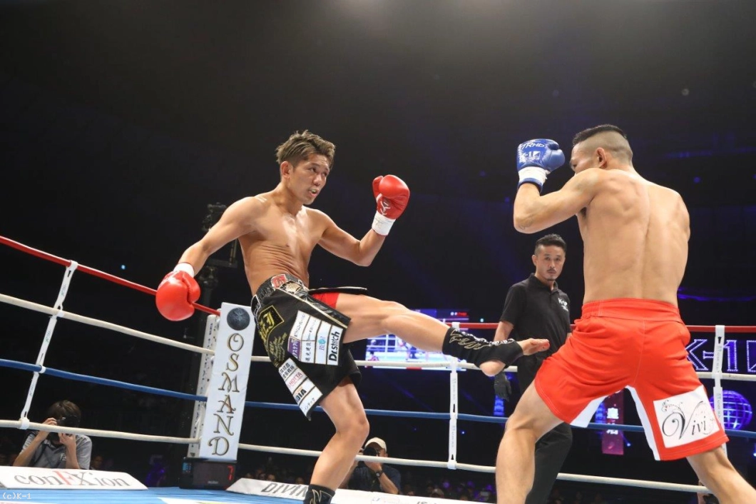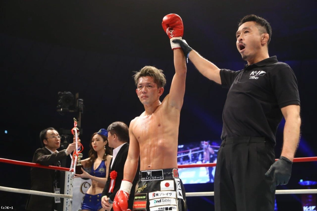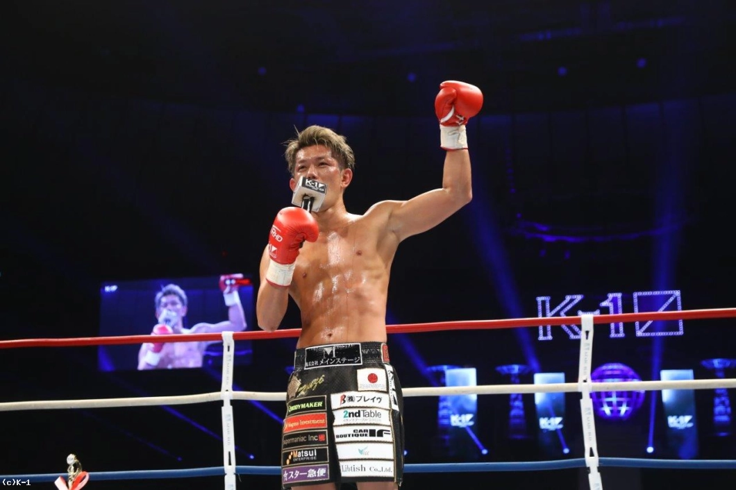 (2R以降はセコンドの指示通りに戦えた?)まあ、そうっすね。2R以降は俺の実力出したかなって感じで。かわいそうでしょ、そんな初K-1でいきなりボコボコにしたら。ええとこも見せたいやろうし、向こうにも応援団がいるやろうし、横浜が地元ということで。メッチャええヤツやったし。