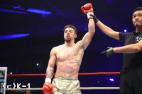 「(試合の感想は?)6連続KO勝ちを目標にしていて。一年を通してだいぶ疲れも出てきた時期なんですけど集中して、めちゃくちゃヤバい倒し方ができたんで興奮してますね。マンガやアニメで観るようなKOをしたいと思っていて、立ったまま失神っていう、これ以上ないような倒しかたができて、ちょっと興奮してますね。格闘技好きとか、とくに男の子はみんな好きなKOじゃないかと思いますね。(相手の印象は?)彼もムエタイベースなので、2R、3Rで調子上げてくると思うので、短期決戦。短期決戦なら僕に敵わないと思ったので、それがハマった感じですね。(勝因は?)1Rで倒すって決めて、獰猛に猛獣のように攻めたことですかね。