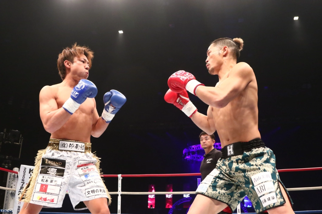 ダメージがあるはずの蓮實だが動きには影響を見せない。東本がロープを背負ったところでパンチを強振して猛攻し、左フックから右フックを当てて東本からダウンを奪い返す。