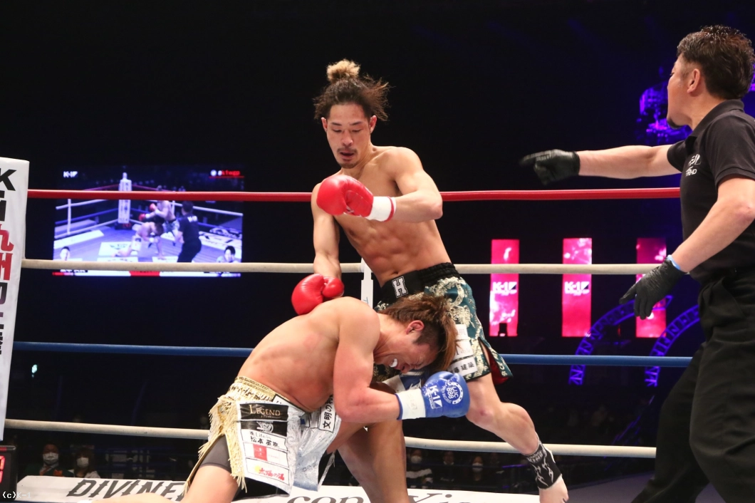 残り時間は20秒を切っていたが、蓮實は右フックで東本をなぎ倒し、逆転KOを決めた。