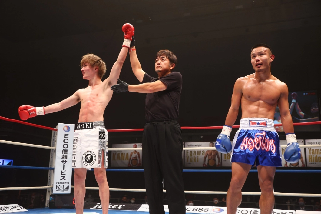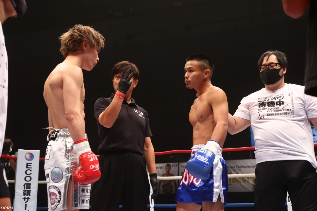 3Rもやはり大石が前に出て右ストレート、左フックと西林を攻める。西林も押し返してハイキック、ヒザ蹴りと放つが、大石は圧を掛け続け右ストレート、左フック。だが圧を受ける西林だが、右クロス、バックブローと反撃し、跳びヒザ、ボディへのヒザと攻勢を作る。判定は30-29、30-28、30-29の3-0で大石。福岡県出身の大石が勝利した。