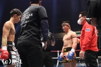 「(試合の感想は)3月に負けて、今回応援してくれる人たちを絶対喜ばせたいと思って、絶対期待に応えたいと思って挑んだんですが、結局また応えられずで、申し訳なさしかないですね。(相手の印象は)パンチも蹴りも強かったです。(一番気をつけていたことは?)半分ぐらいしかできなかったですね。途中でゴンナパー選手のパンチが固くて、目が折れたかなと思って、ずっと二重に見えて距離感が掴めなかったんですよ。(前回と比べると?)前回やった時も、朝久戦もそうですけど、自分が熱くなりすぎて前に出てカウンターもらうっていうパターンやったんで、とにかく落ち着いて戦うっていうのが一番でした。で、落ち着いて戦えたかなとは思うんですけど、練習してきたことが全部出せたかって言ったら、半分しか出せてないって印象ですね。(ファンにメッセージを)今回は絶対に期待に応えたかったんですけど、応えられなくて申し訳ないです。結局、応えられなかったし、チャンピオンじゃなくなって元チャンピオンになってもうたけど、もっともっと頑張るんで、変わらず応援よろしくお願いします。ありがとうございました」