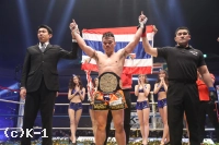 「今日、私はやっとチャンピオンになることができた。応援してくださった日本のみなさま、ジムのみなさん、特に会長には支えて頂き感謝しています。そしてK-1の関係者のみなさんにも感謝致します。こうしてタイにベルトを持って帰ることができた。天国の父の供養にもなった。本当にありがとうございました」