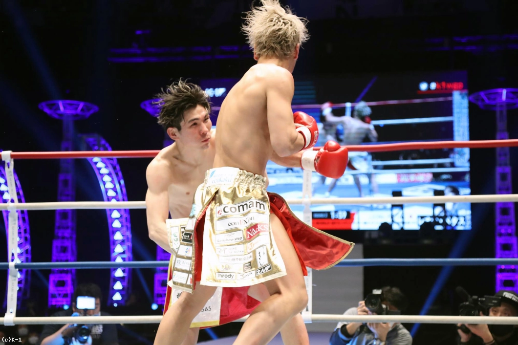 (対戦相手の印象は?)本当に強いと思ってるんで。前に戦ってからすごい成長して別人のように感じました。気持ちの強い選手なんで打ち合いに来てくれたし。僕が一番やりたい試合って、ああいう試合で。あそこまでいくと倒されてもいいやくらいの気持ちで打ち合ってて。実際、危ないかなと思って、絶対に右は食らわないという作戦だったんですけど、途中でそれを超えてこの人と打ち合いたいという気持ちになったんで。殺されてもいいかなと思って殺しにいった結果が、ああなったのかなと思いました。