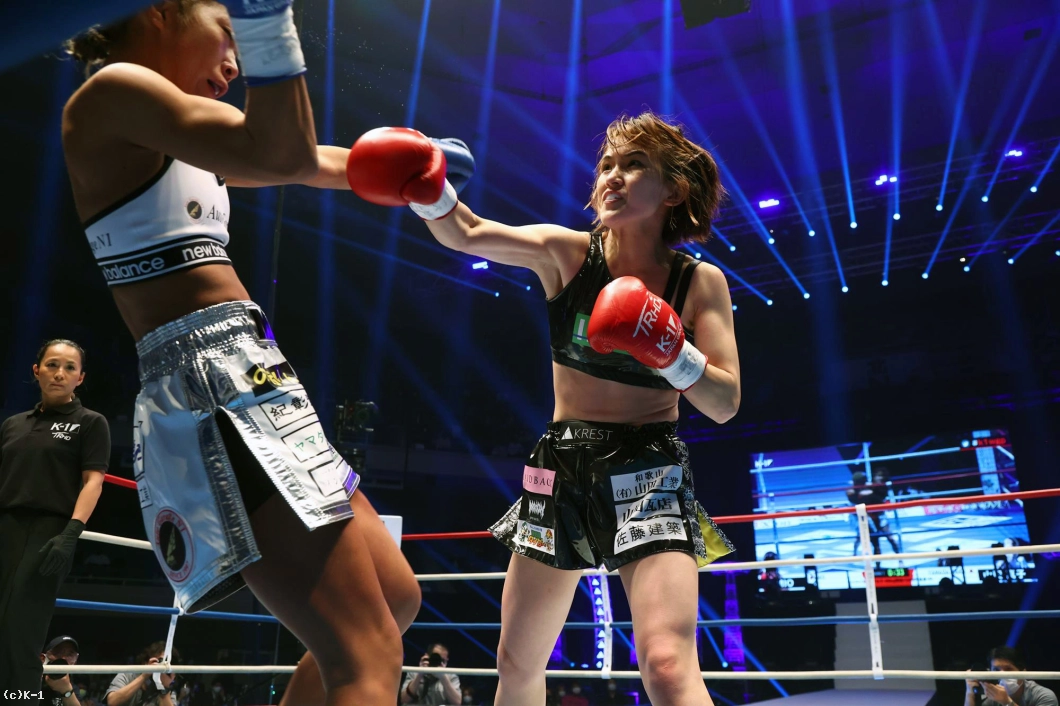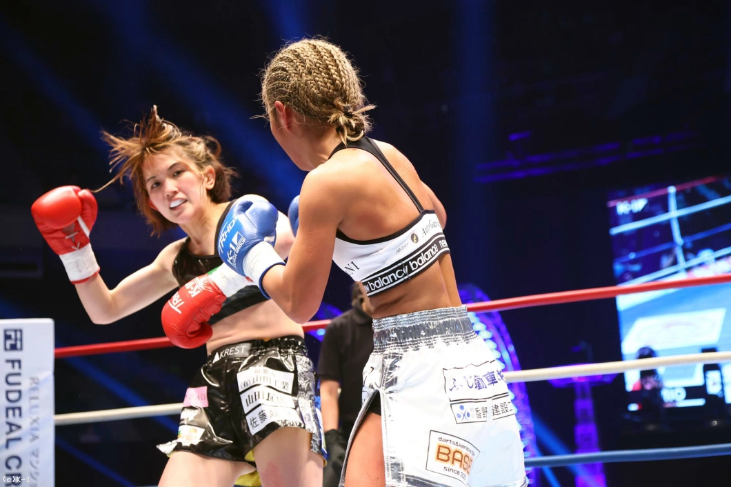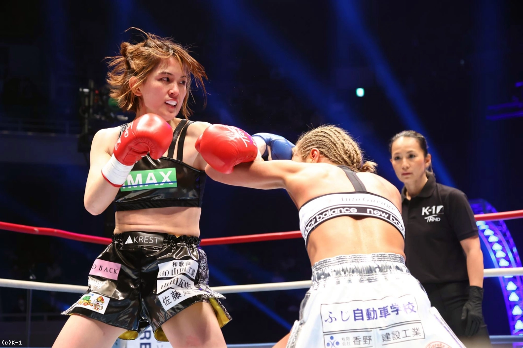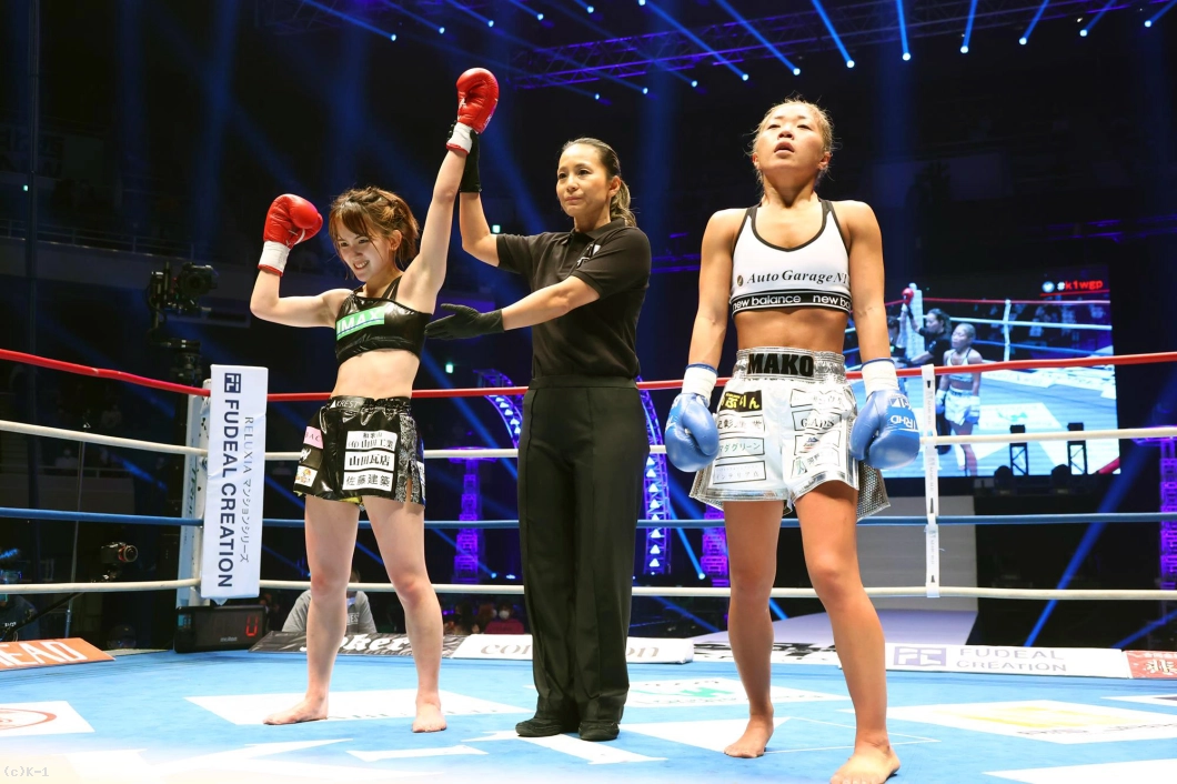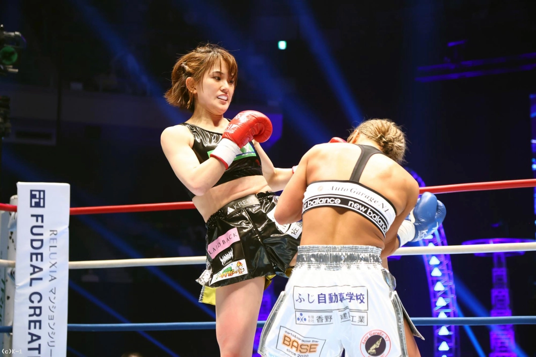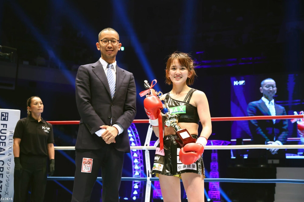 (ファンへのメッセージを)改めて、今回応援してくださりありがとうございました。K-1での初勝利を収められて、すごくうれしいです。これからもっともっと進化していきたいと思っているので、これからも応援よろしくお願いいたします」