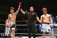 3R、児玉の前進にやや下がらされる提髪。児玉は左ボディフックから顔への左フックをダブルで打ち込む。児玉は右ボディフックも見せ、提髪のガードを下げさせ右ストレート。攻勢の児玉は「やろうぜ」とばかりのジェスチャーで提髪を呼び込む。判定は3者29-26で提髪。1・2Rとダウンを奪い勝利した。