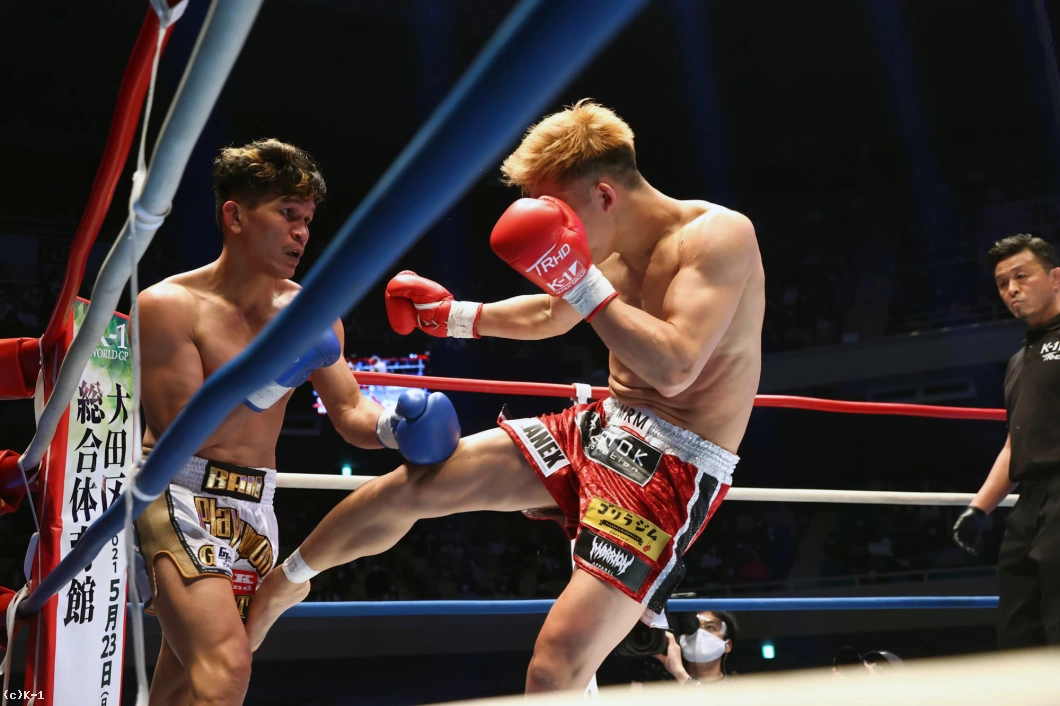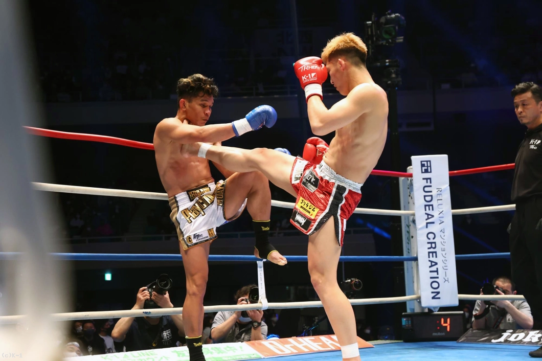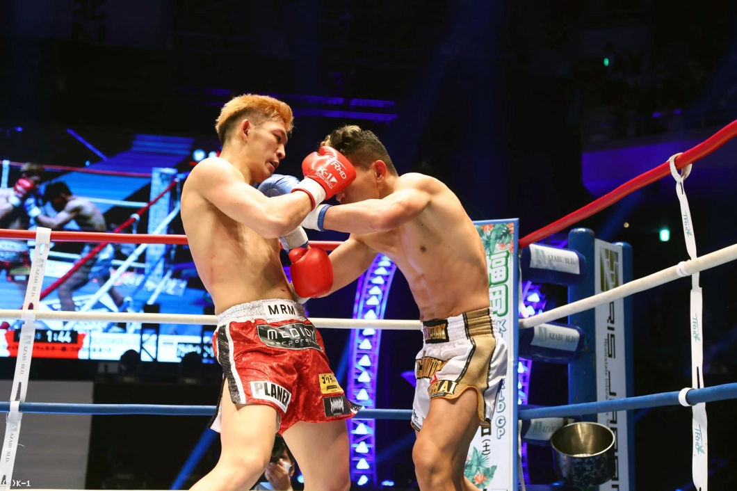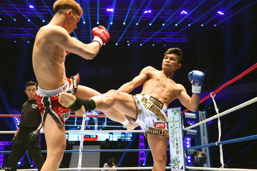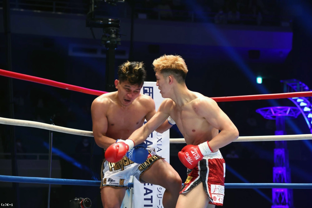 2R、前に出てプライチュンポンの攻撃を誘った野杁は、左インローを打たせた直後に右ストレート。これにプライチュンポンは腰が落ちてダウンを喫する。