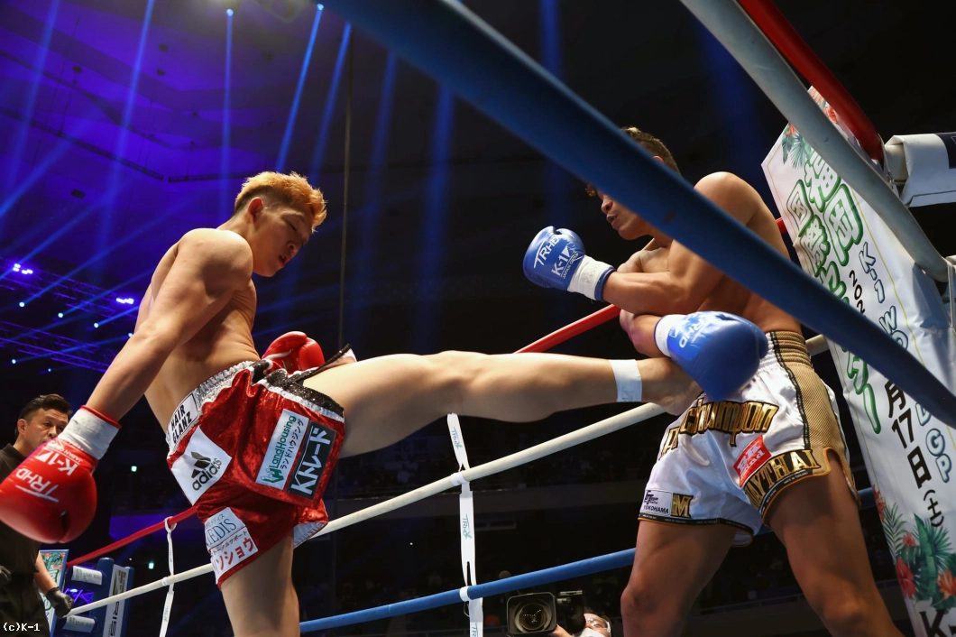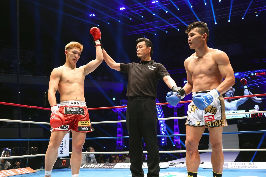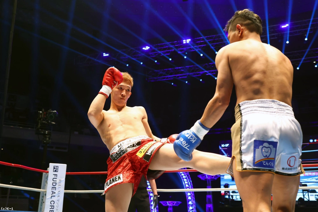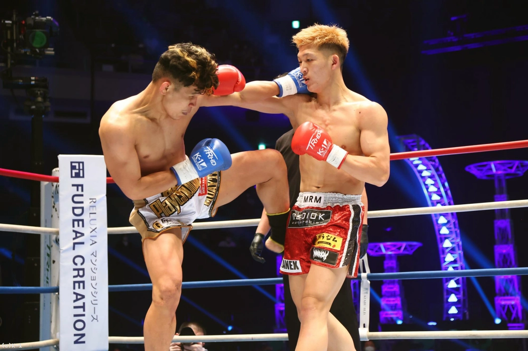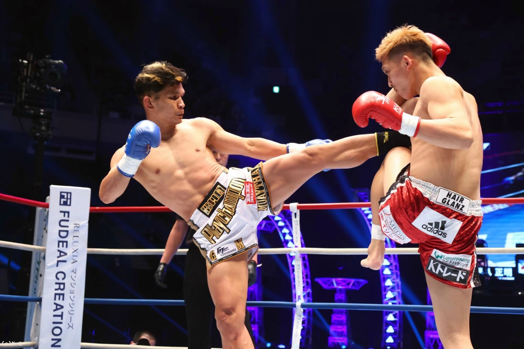 2R、前に出てプライチュンポンの攻撃を誘った野杁は、左インローを打たせた直後に右ストレート。これにプライチュンポンは腰が落ちてダウンを喫する。