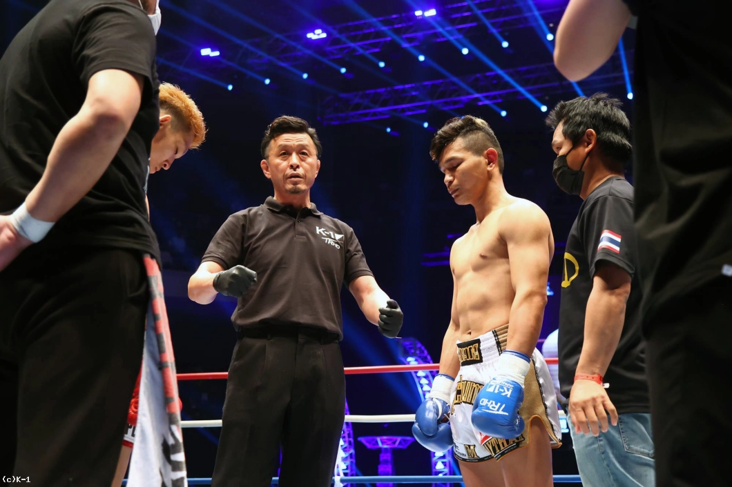 「(試合の感想は?)今回も倒しきれず、0点ですかね。(相手の印象は?)想像通りというか、怖い攻撃もなかったですし、やりづらかった、ぐらいですかね。(ムエタイのやりづらさ?)組まれることは想定内でしたけど、組まれてプッシュしようと思っても、首相撲みたいに腕をロックして抜かせないようにする技術が上手だったというか、組まれた時に押し返すことができなかったので、そこはやりづらかったなと、やってて思いました。(ストレスの残る試合が続きますが)倒すことでしか、このモヤモヤは発散することはできないと思うので、次戦こそ期待しててほしいなと思います。