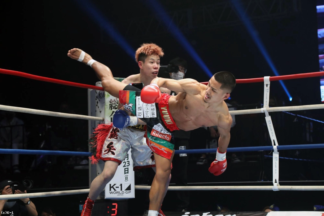 (本戦の判定が出た時点でそう思った?)本戦はドローでもいいと思うんですけど、何点差でしたっけ? 2点差行きましたよね、確か? 30:28とかありましたよね? 延長は勝つと思ってたし、普通に相手もローも効いて、顔も食らってグラグラしてたし、わからないです。(ファンの皆さんへメッセージを)ありがとうございました」